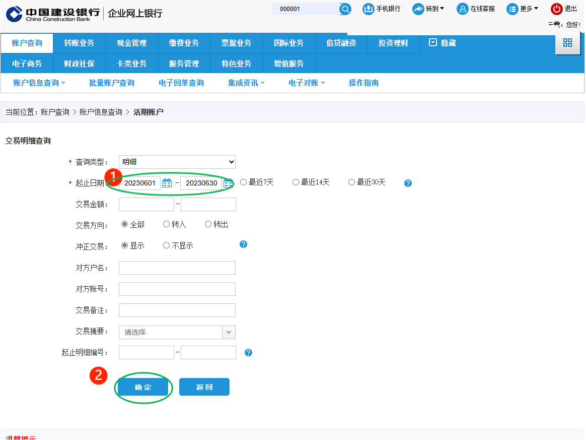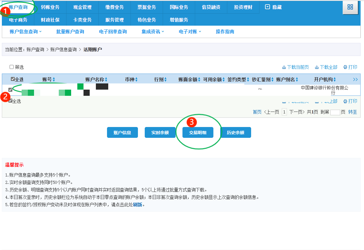 第一步:賬戶查詢—選擇賬戶—交易明細