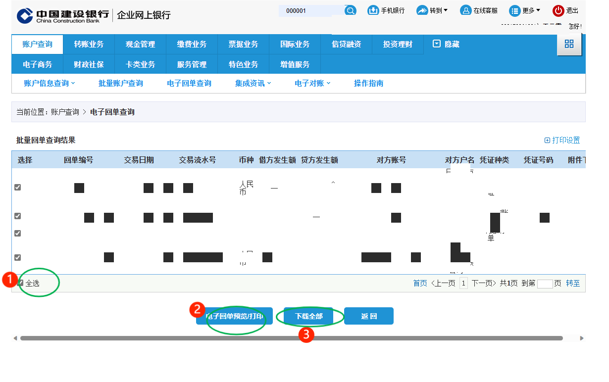 第三步:點全選—電子回單打印/下載全部(pdf格式下載)