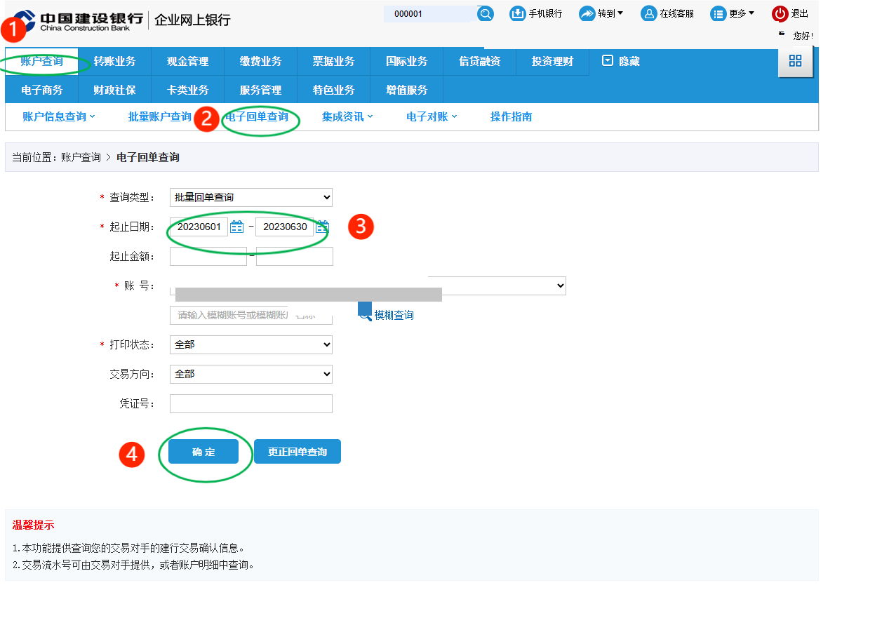 第二步:賬戶查詢—電子回單查詢—選日期—確定