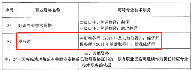 稅務師(2014年以后取得):助理經(jīng)濟師,即初級職稱。